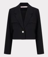 Stoere korte blazer met chique gouden knoop en faux cargozakken aan de voorzijde. Maak je look compleet met de bijpassende rok of broek. Model is 1.73m en draagt maat S.