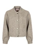 Geef je outfit een stijlvolle upgrade met dit cropped bomberjack, vervaardigd uit een zachte, luxe stof met subtiele zilveren en gouden lurexdraden. De glinsterende details geven een moderne touch aan het klassieke silhouet, terwijl de rijke textuur zorgt voor een comfortabele én elegante uitstraling. Dankzij de lange mouwen en de drukknoopsluiting is dit jack zowel casual als verfijnd en ideaal om je dagelijkse look mee op te frissen of als eyecatcher over een avondoutfit. Details: Cropped bomberjack met lange mouwen Zachte fancy stof met zilver- en goudkleurige lurexdraden Voorzien van drukknoopsluiting aan de voorkant Comfortabele pasvorm met lichte structuur Materiaalsamenstelling: 50% polyester, 30% wol, 20% metallic Model is 175 cm en draagt maat S